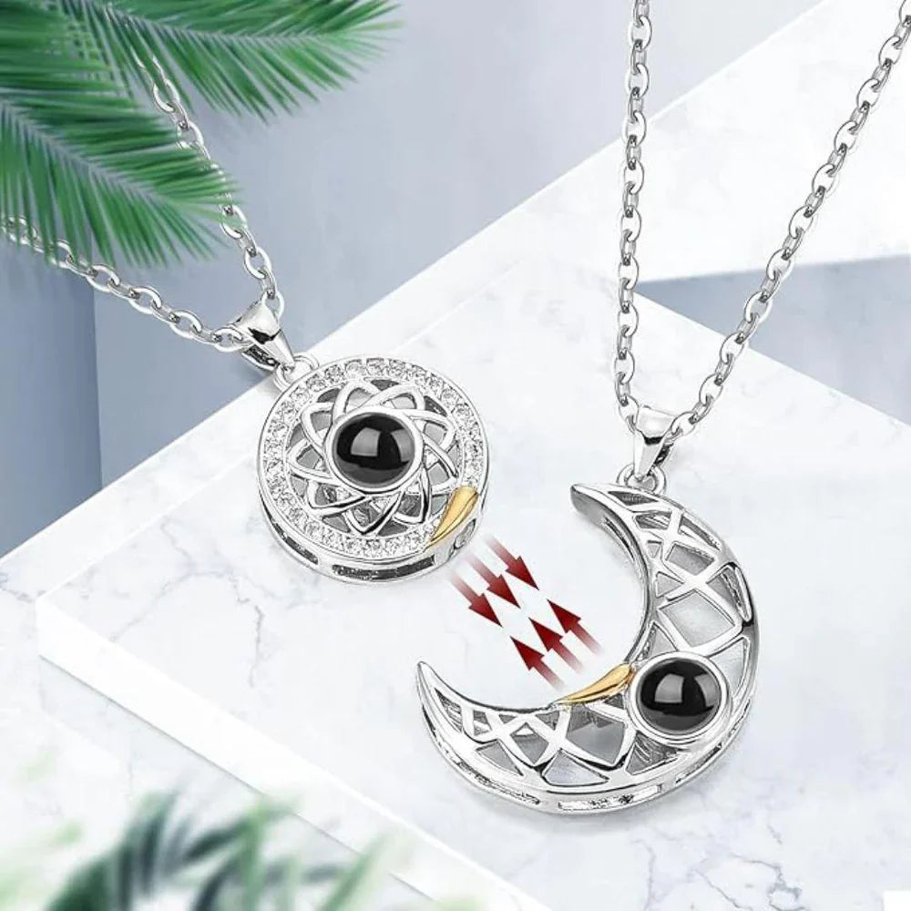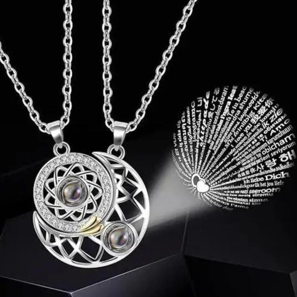 This matching couple's neckpiece set features delicate silver moon and star pendants, symbolizing the everlasting love shared between two people. Handcrafted with high-quality materials, this neckpiece set is a timeless and meaningful gift for any special occasion.
