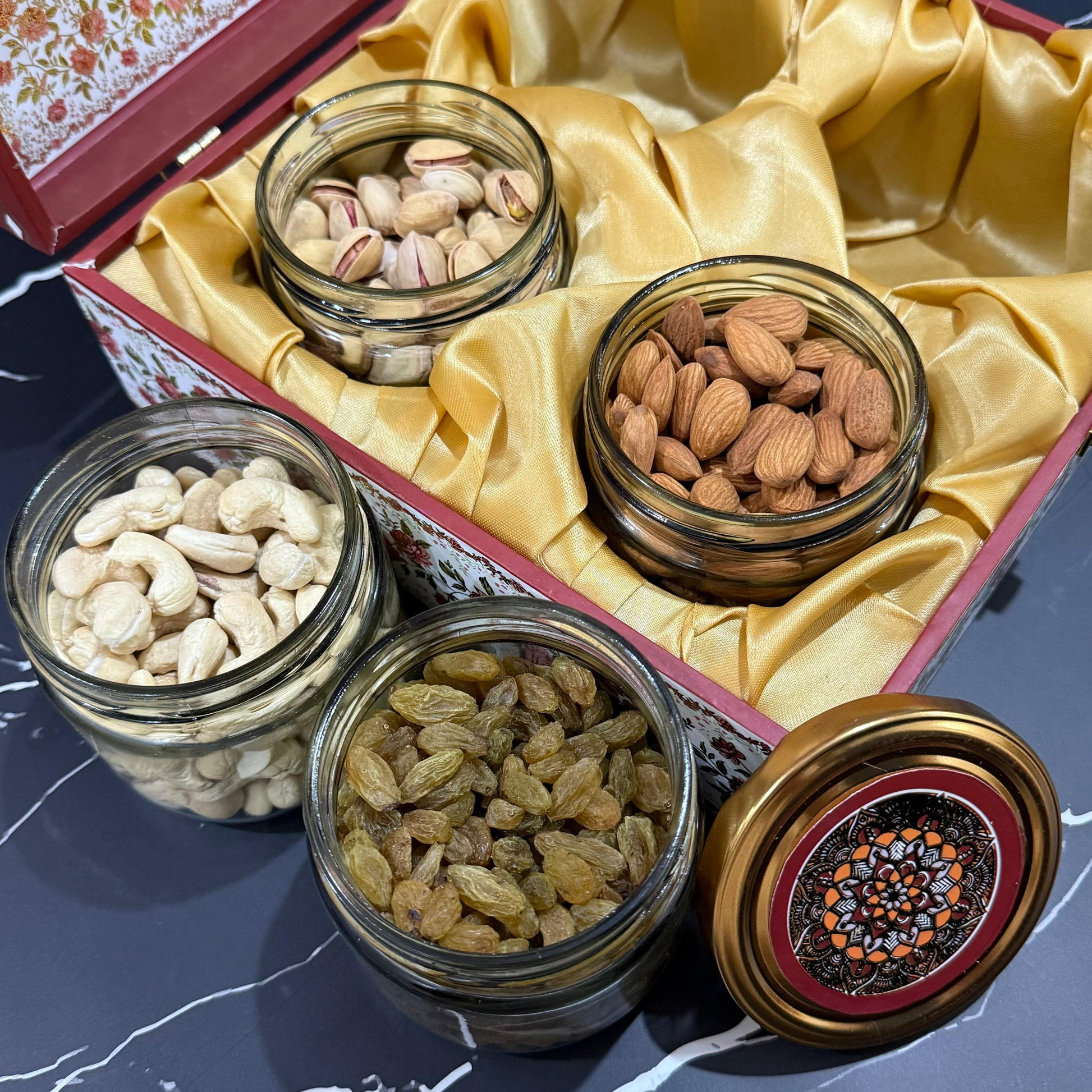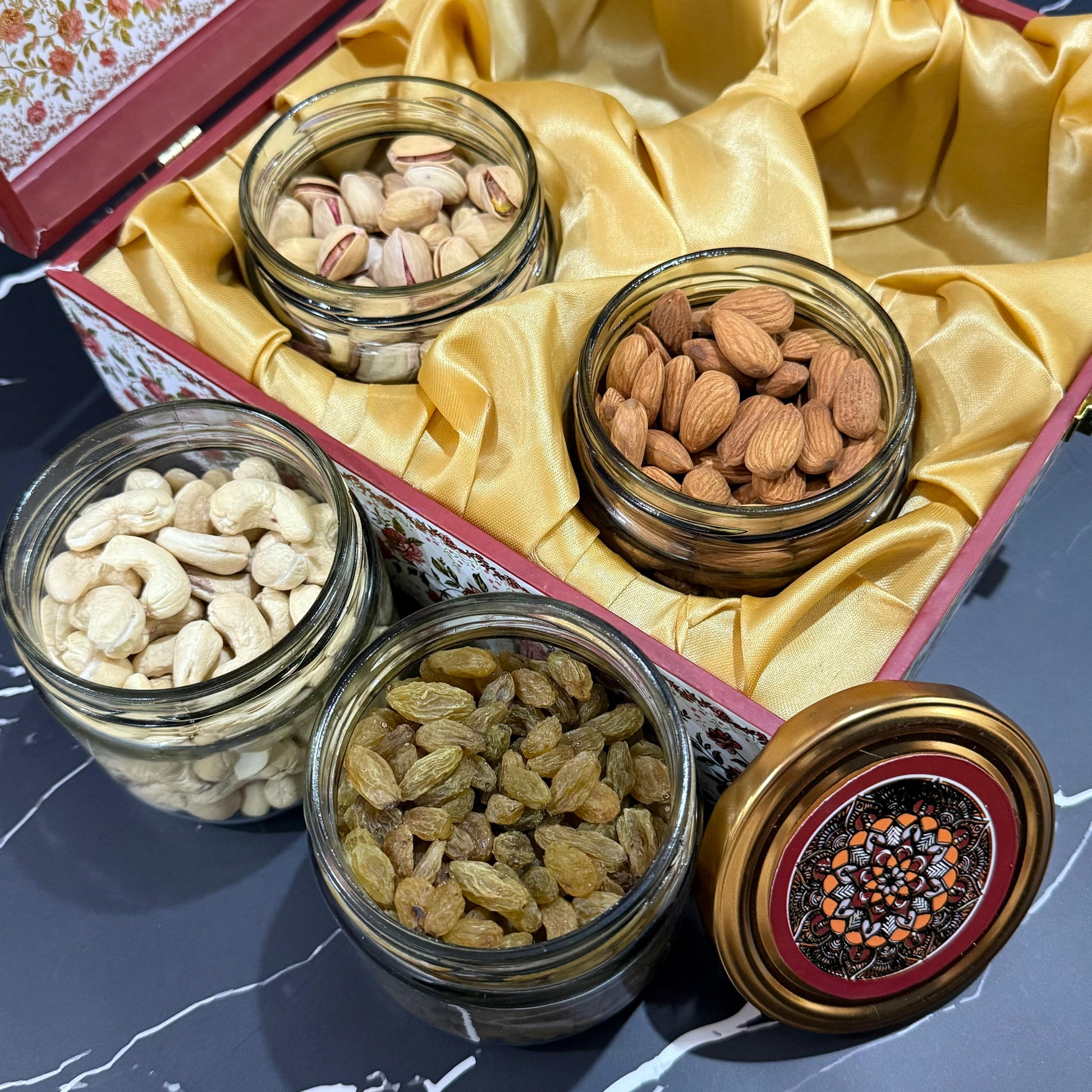 • 4 Glass Jar ( with 4 different dry fruits )