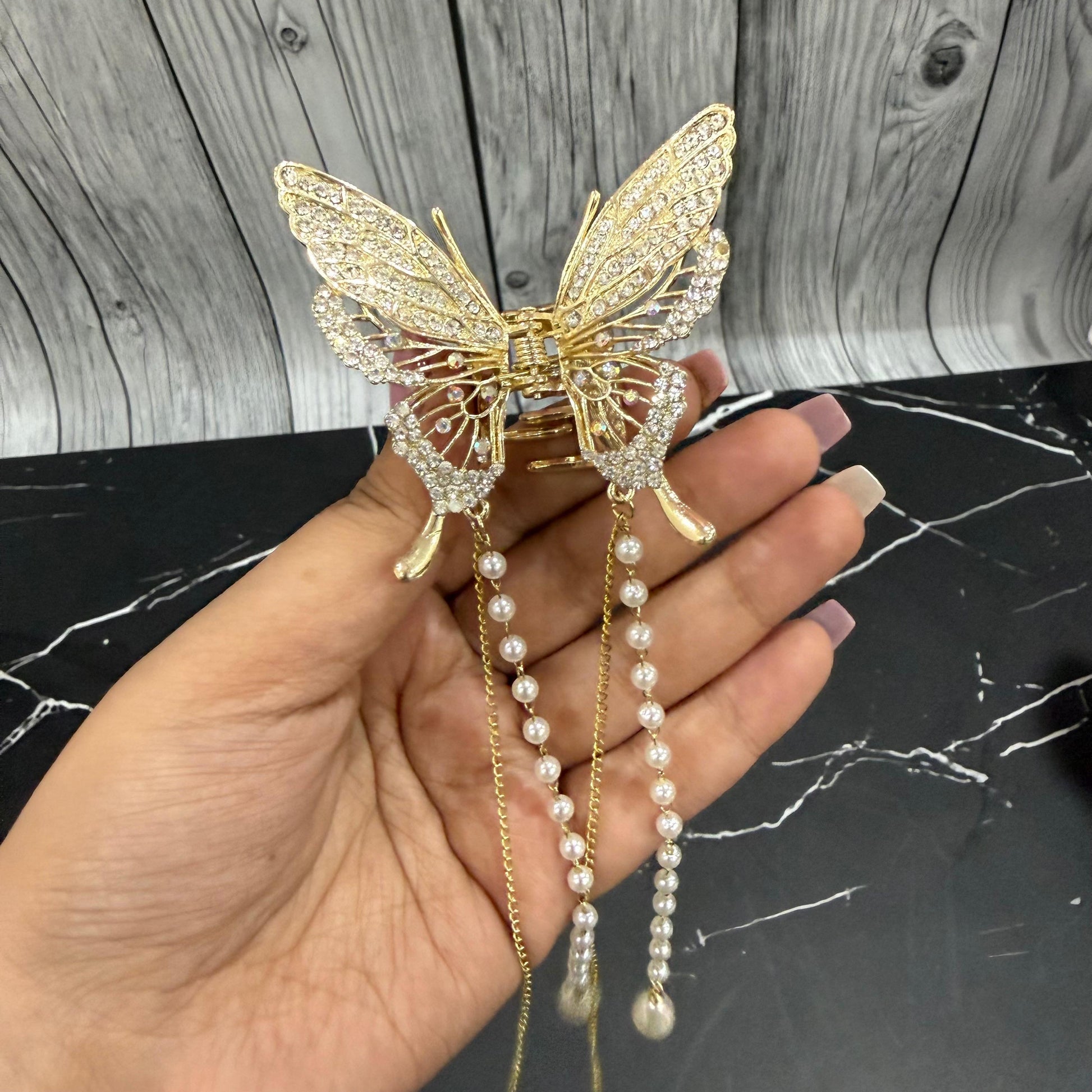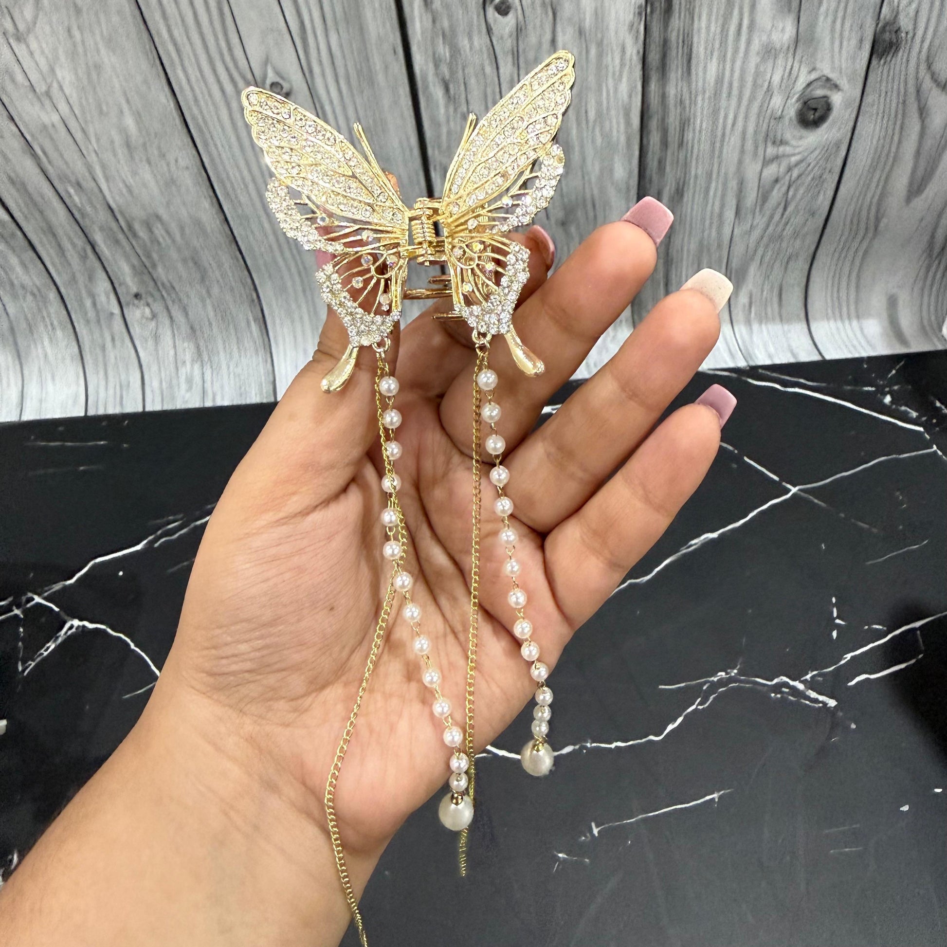 Add some whimsy to your hairstyle with our Hanging Butterfly Hairclaw. The delicate Korean design features a beautiful butterfly that will add a touch of charm to any look. Perfect for daily wear or special occasions, this hair accessory is a must-have for any fashion-forward individual.
