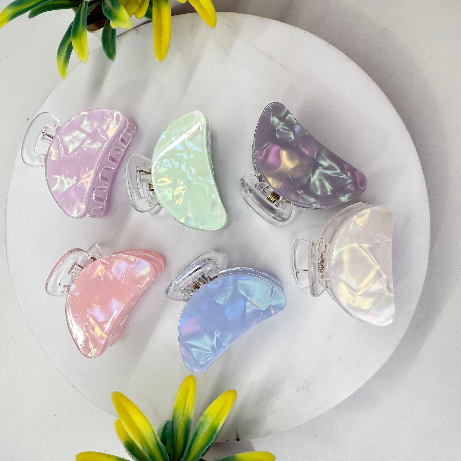 Elevate your hair game with our Resin hairclaw. This sturdy and stylish hair accessory is perfect for holding your hair in place all day long. It's made of high-quality resin, ensuring durability and a sleek look. Say goodbye to messy hair and hello to effortless style.